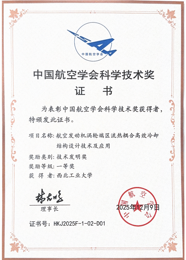 中国航空学会技术发明奖一等奖